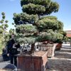 - Pinus can be shrubs or large, evergreen trees, some species with attractive bark, developing an irregular outline with age and bearing long needle-like leaves in bundles of 2, 3 or 5; conspicuous cones may fall or remain on the tree for years